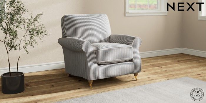 7.2.10 Ashford Relaxed Sit Armchair Chenille Stripe Slate Blue Castor - Light | Made Click here to use our website with more accessibility support, for example screen readers