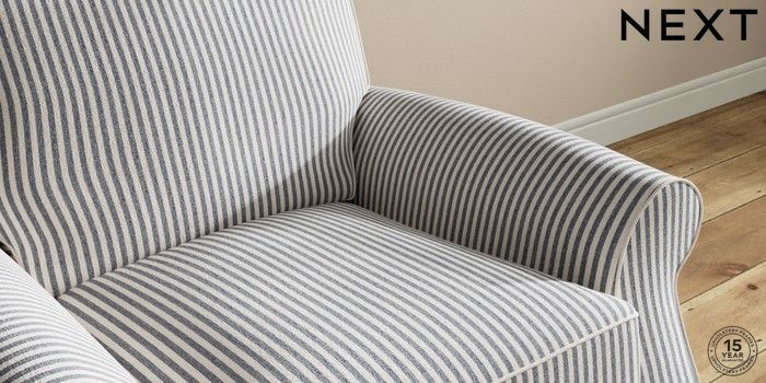 7.2.10 Ashford Relaxed Sit Armchair Chenille Stripe Slate Blue Low Turned - Dark | Made Click here to use our website with more accessibility support, for example screen readers