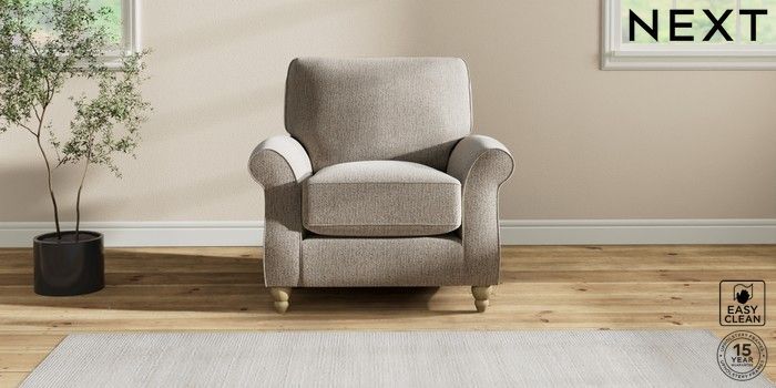 7.2.10 Ashford Relaxed Sit Armchair Chunky Boucle Easy Clean Dove Low Turned - Light | Made Click here to use our website with more accessibility support, for example screen readers