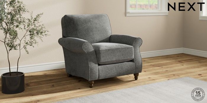 7.2.10 Ashford Relaxed Sit Armchair Chunky Chenille Dark Grey Low Turned - Mid | Made Click here to use our website with more accessibility support, for example screen readers