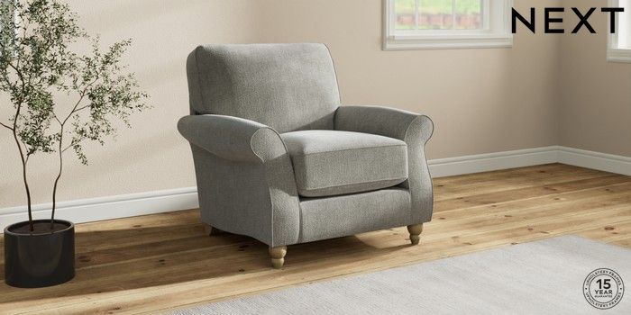 7.2.10 Ashford Relaxed Sit Armchair Chunky Chenille Light Grey Low Turned - Light | Made Click here to use our website with more accessibility support, for example screen readers