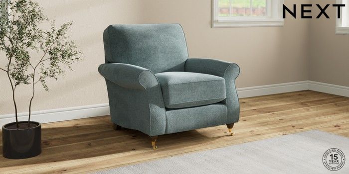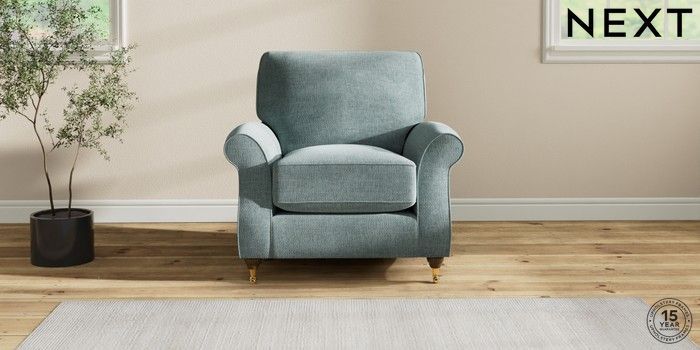 7.2.10 Ashford Relaxed Sit Armchair Chunky Chenille Light Teal Green Castor - Mid | Made Click here to use our website with more accessibility support, for example screen readers