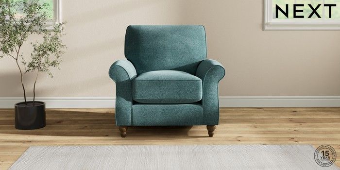 7.2.10 Ashford Relaxed Sit Armchair Chunky Chenille Mid Teal Green Low Turned - Mid | Made Click here to use our website with more accessibility support, for example screen readers