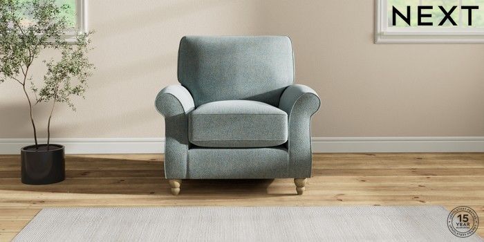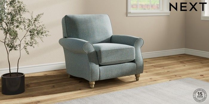 7.2.10 Ashford Relaxed Sit Armchair Chunky Marl Mid Blue Low Turned - Light | Made Click here to use our website with more accessibility support, for example screen readers