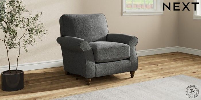 7.2.10 Ashford Relaxed Sit Armchair Chunky Texture Dark Grey Low Turned - Mid | Made Click here to use our website with more accessibility support, for example screen readers