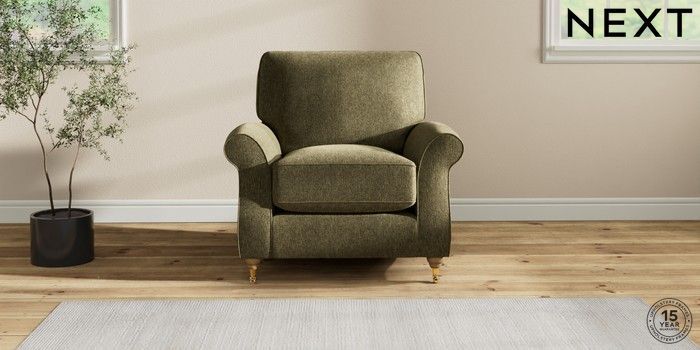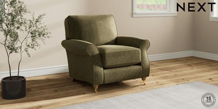 7.2.10 Ashford Relaxed Sit Armchair Cotswold Chenille Dark Green Castor - Light | Made Click here to use our website with more accessibility support, for example screen readers
