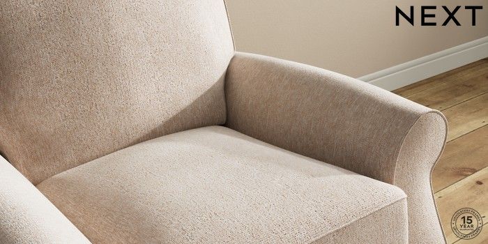 7.2.10 Ashford Relaxed Sit Armchair Cotswold Chenille Light Natural Modern Turned Metal Cap - Mid | Made Click here to use our website with more accessibility support, for example screen readers