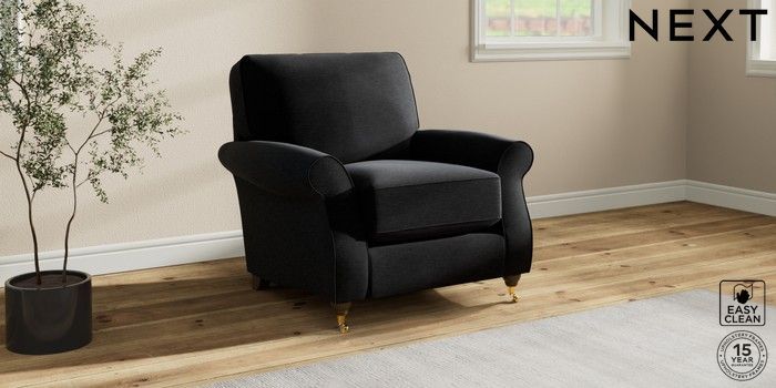 7.2.10 Ashford Relaxed Sit Armchair Fine Chenille Easy Clean Black Castor - Mid | Made Click here to use our website with more accessibility support, for example screen readers