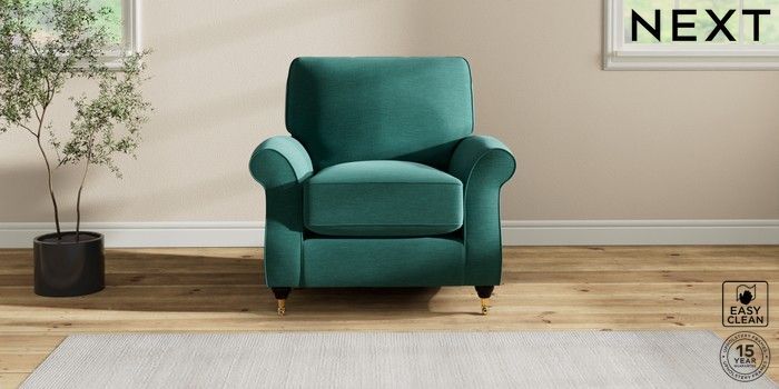 7.2.10 Ashford Relaxed Sit Armchair Fine Chenille Easy Clean Dark Juniper Green Castor - Dark | Made Click here to use our website with more accessibility support, for example screen readers