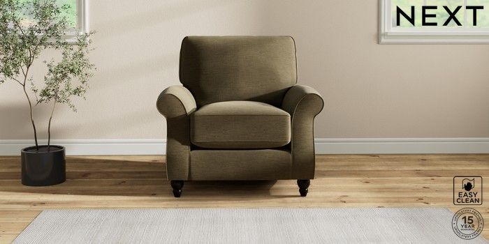 7.2.10 Ashford Relaxed Sit Armchair Fine Chenille Easy Clean Dark Moss Green Low Turned - Dark | Made Click here to use our website with more accessibility support, for example screen readers