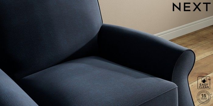 7.2.10 Ashford Relaxed Sit Armchair Fine Chenille Easy Clean Dark Navy Blue Castor - Mid | Made Click here to use our website with more accessibility support, for example screen readers