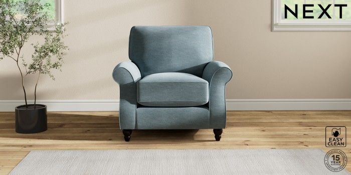7.2.10 Ashford Relaxed Sit Armchair Fine Chenille Easy Clean Mid Blue Low Turned - Dark | Made Click here to use our website with more accessibility support, for example screen readers