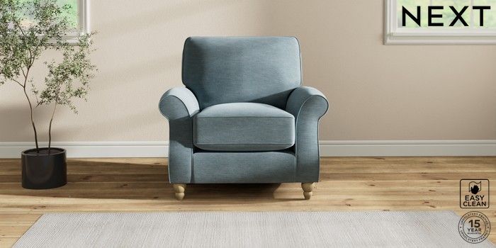 7.2.10 Ashford Relaxed Sit Armchair Fine Chenille Easy Clean Mid Blue Low Turned - Light | Made Click here to use our website with more accessibility support, for example screen readers
