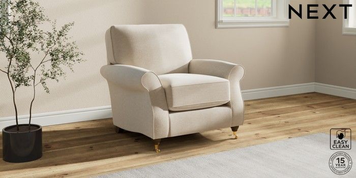 7.2.10 Ashford Relaxed Sit Armchair Fine Chenille Easy Clean Oyster Castor - Mid | Made Click here to use our website with more accessibility support, for example screen readers