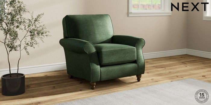 7.2.10 Ashford Relaxed Sit Armchair Luxe Chenille Dark Green Low Turned - Mid | Made Click here to use our website with more accessibility support, for example screen readers