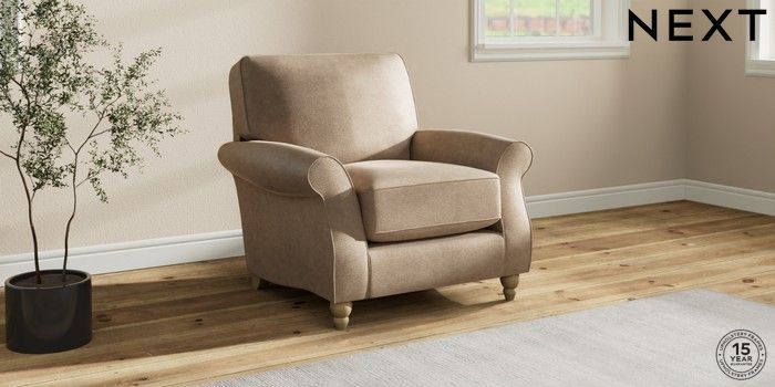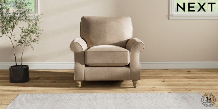 7.2.10 Ashford Relaxed Sit Armchair Luxe Chenille Mid Camel Beige Low Turned - Light | Made Click here to use our website with more accessibility support, for example screen readers