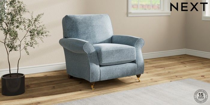 7.2.10 Ashford Relaxed Sit Armchair Plush Chenille Light Blue Castor - Mid | Made Click here to use our website with more accessibility support, for example screen readers