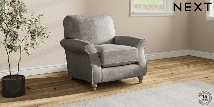 7.2.10 Ashford Relaxed Sit Armchair Plush Chenille Light Grey Low Turned - Light | Made Click here to use our website with more accessibility support, for example screen readers