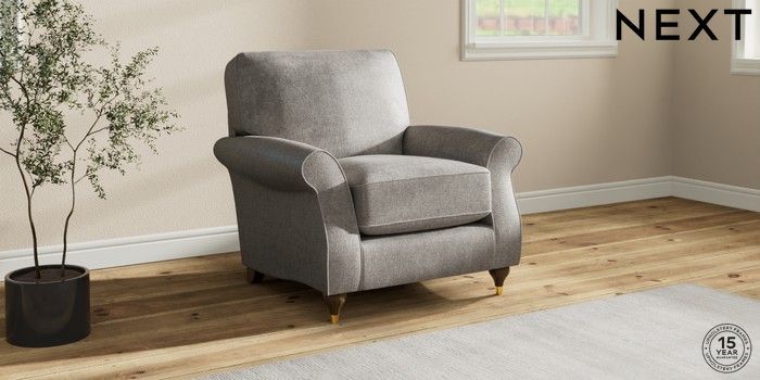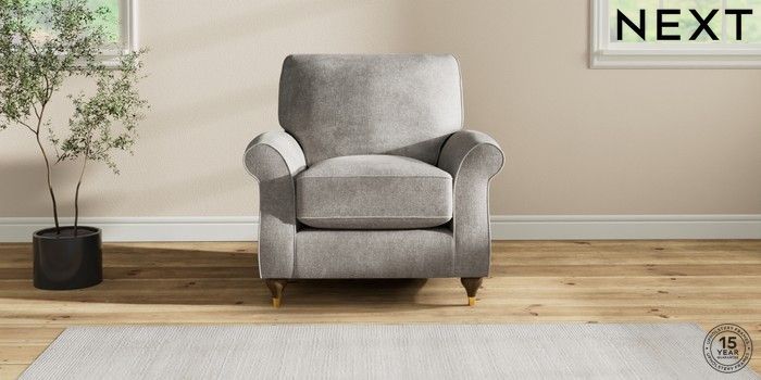 7.2.10 Ashford Relaxed Sit Armchair Plush Chenille Light Grey Modern Turned Metal Cap - Mid | Made Click here to use our website with more accessibility support, for example screen readers