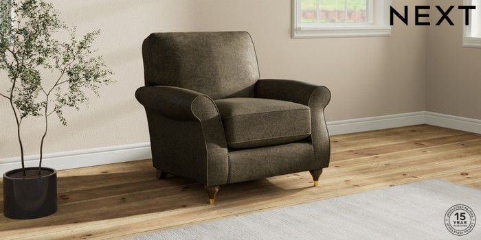 7.2.10 Ashford Relaxed Sit Armchair Plush Chenille Moss Green Modern Turned Metal Cap - Mid | Made Click here to use our website with more accessibility support, for example screen readers