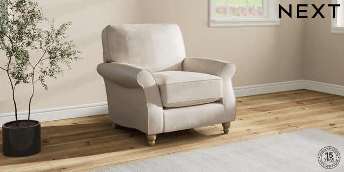 7.2.10 Ashford Relaxed Sit Armchair Plush Chenille Oyster Low Turned - Light | Made Click here to use our website with more accessibility support, for example screen readers