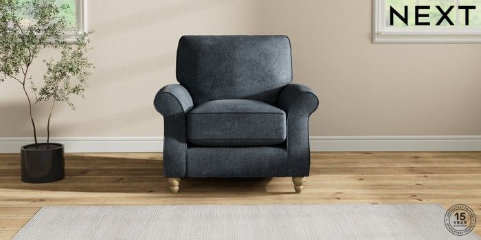 7.2.10 Ashford Relaxed Sit Armchair Plush Chenille Slate Blue Low Turned - Light | Made Click here to use our website with more accessibility support, for example screen readers
