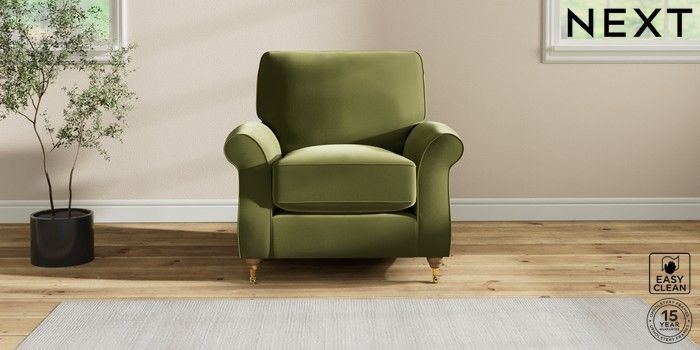 7.2.10 Ashford Relaxed Sit Armchair Plush Velvet Easy Clean Mid Olive Green Castor - Light | Made Click here to use our website with more accessibility support, for example screen readers