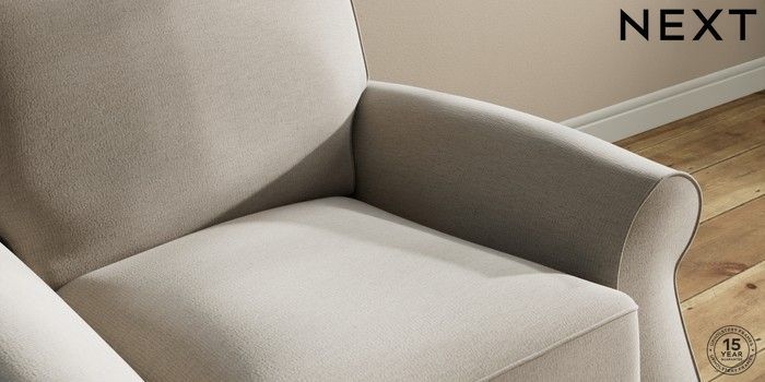 7.2.10 Ashford Relaxed Sit Armchair Ripple Chenille Light Natural Modern Turned Metal Cap - Mid | Made Click here to use our website with more accessibility support, for example screen readers