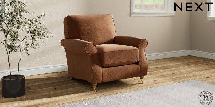 7.2.10 Ashford Relaxed Sit Armchair Ripple Chenille Mid Rust Brown Castor - Light | Made Click here to use our website with more accessibility support, for example screen readers