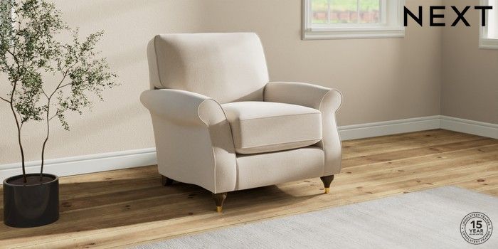 7.2.10 Ashford Relaxed Sit Armchair Studio Chenille Oyster Modern Turned Metal Cap - Mid | Made Click here to use our website with more accessibility support, for example screen readers