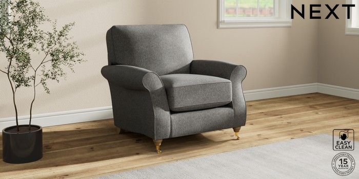 7.2.10 Ashford Relaxed Sit Armchair Tweedy Blend Easy Clean Dark Grey Castor - Light | Made Click here to use our website with more accessibility support, for example screen readers