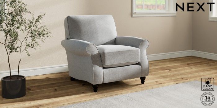 7.2.10 Ashford Relaxed Sit Armchair Tweedy Blend Easy Clean Light Silver Grey Low Turned - Dark | Made Click here to use our website with more accessibility support, for example screen readers