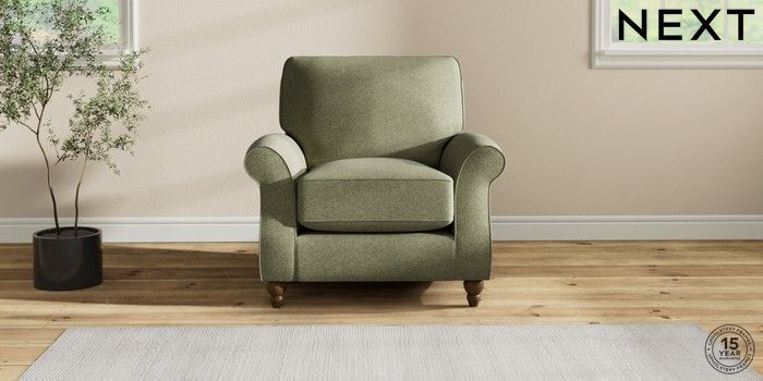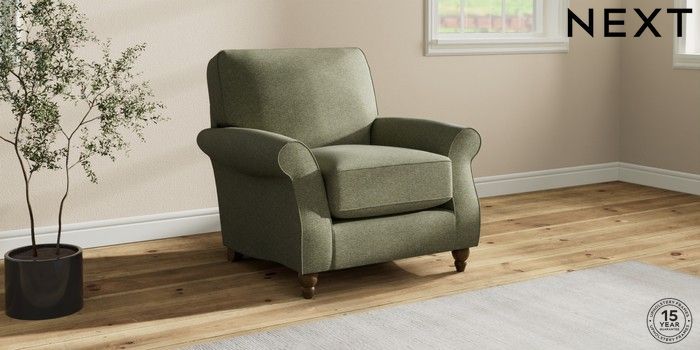 7.2.10 Ashford Relaxed Sit Armchair Tweedy Chenille Mid Moss Green Low Turned - Mid | Made Click here to use our website with more accessibility support, for example screen readers