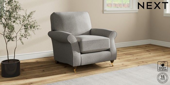 7.2.10 Ashford Relaxed Sit Armchair Woven Chenille Easy Clean Light Grey Castor - Mid | Made Click here to use our website with more accessibility support, for example screen readers
