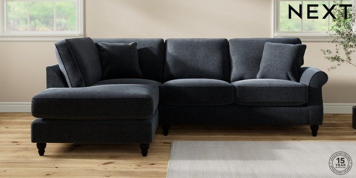 7.2.10 Ashford Relaxed Sit Medium Corner Chaise - Left Hand Boucle Chenille Dark Slate Blue Low Turned - Dark | Made Click here to use our website with more accessibility support, for example screen readers