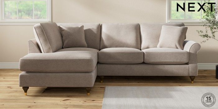 7.2.10 Ashford Relaxed Sit Medium Corner Chaise - Left Hand Boucle Chenille Light Natural Modern Turned Metal Cap - Mid | Made Click here to use our website with more accessibility support, for example screen readers