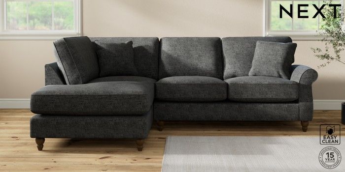 7.2.10 Ashford Relaxed Sit Medium Corner Chaise - Left Hand Boucle Weave Easy Clean Charcoal Grey Low Turned - Mid | Made Click here to use our website with more accessibility support, for example screen readers