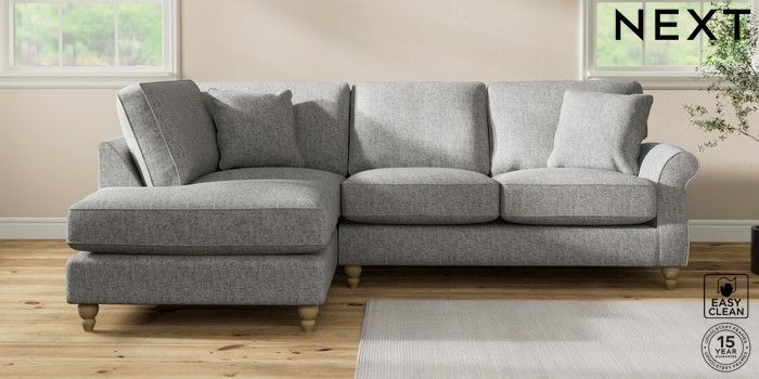 7.2.10 Ashford Relaxed Sit Medium Corner Chaise - Left Hand Chunky Boucle Easy Clean Light Grey Low Turned - Light | Made Click here to use our website with more accessibility support, for example screen readers