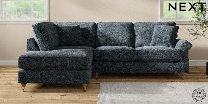 7.2.10 Ashford Relaxed Sit Medium Corner Chaise - Left Hand Chunky Chenille Dark Navy Blue Castor - Light | Made Click here to use our website with more accessibility support, for example screen readers