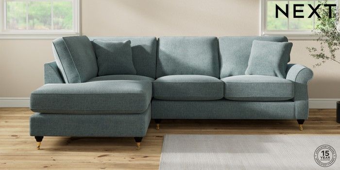 7.2.10 Ashford Relaxed Sit Medium Corner Chaise - Left Hand Chunky Chenille Light Teal Green Castor - Dark | Made Click here to use our website with more accessibility support, for example screen readers