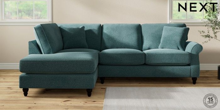 7.2.10 Ashford Relaxed Sit Medium Corner Chaise - Left Hand Chunky Chenille Mid Teal Green Low Turned - Dark | Made Click here to use our website with more accessibility support, for example screen readers