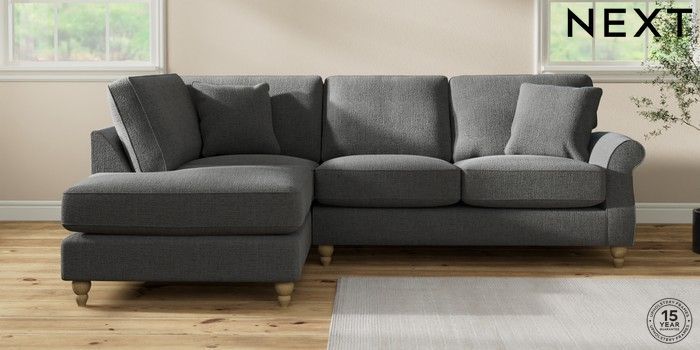 7.2.10 Ashford Relaxed Sit Medium Corner Chaise - Left Hand Chunky Texture Dark Grey Low Turned - Light | Made Click here to use our website with more accessibility support, for example screen readers