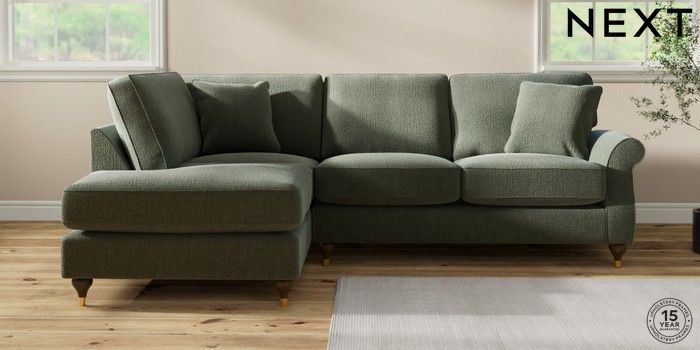 7.2.10 Ashford Relaxed Sit Medium Corner Chaise - Left Hand Chunky Texture Mid Forest Green Modern Turned Metal Cap - Mid | Made Click here to use our website with more accessibility support, for example screen readers