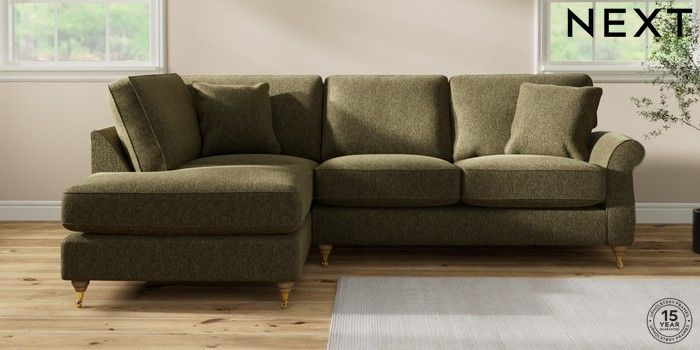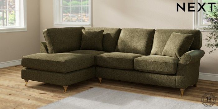 7.2.10 Ashford Relaxed Sit Medium Corner Chaise - Left Hand Cotswold Chenille Dark Green Castor - Light | Made Click here to use our website with more accessibility support, for example screen readers