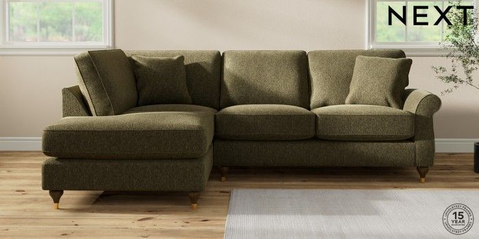 7.2.10 Ashford Relaxed Sit Medium Corner Chaise - Left Hand Cotswold Chenille Dark Green Modern Turned Metal Cap - Mid | Made Click here to use our website with more accessibility support, for example screen readers