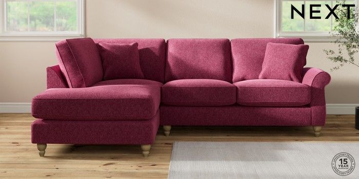 7.2.10 Ashford Relaxed Sit Medium Corner Chaise - Left Hand Cotswold Chenille Dark Raspberry Pink Low Turned - Light | Made Click here to use our website with more accessibility support, for example screen readers