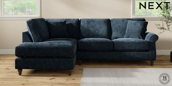 7.2.10 Ashford Relaxed Sit Medium Corner Chaise - Left Hand Distressed Velour Midnight Blue Low Turned - Mid | Made Click here to use our website with more accessibility support, for example screen readers