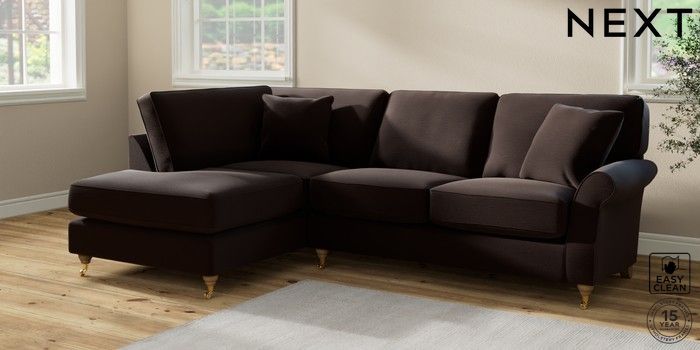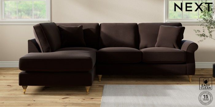 7.2.10 Ashford Relaxed Sit Medium Corner Chaise - Left Hand Fine Chenille Easy Clean Chocolate Brown Castor - Light | Made Click here to use our website with more accessibility support, for example screen readers