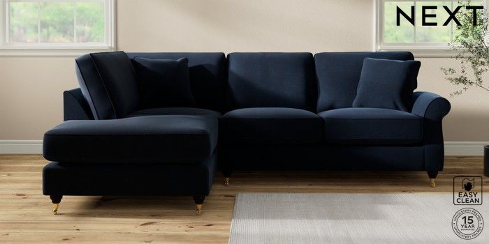 7.2.10 Ashford Relaxed Sit Medium Corner Chaise - Left Hand Fine Chenille Easy Clean Dark Navy Blue Castor - Dark | Made Click here to use our website with more accessibility support, for example screen readers