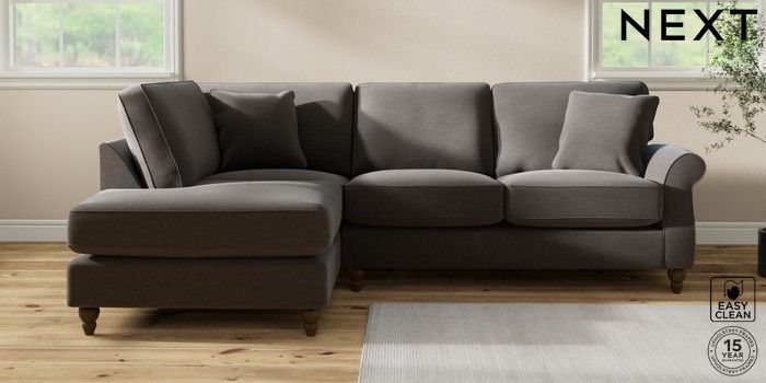 7.2.10 Ashford Relaxed Sit Medium Corner Chaise - Left Hand Fine Chenille Easy Clean Dark Smoke Grey Low Turned - Mid | Made Click here to use our website with more accessibility support, for example screen readers